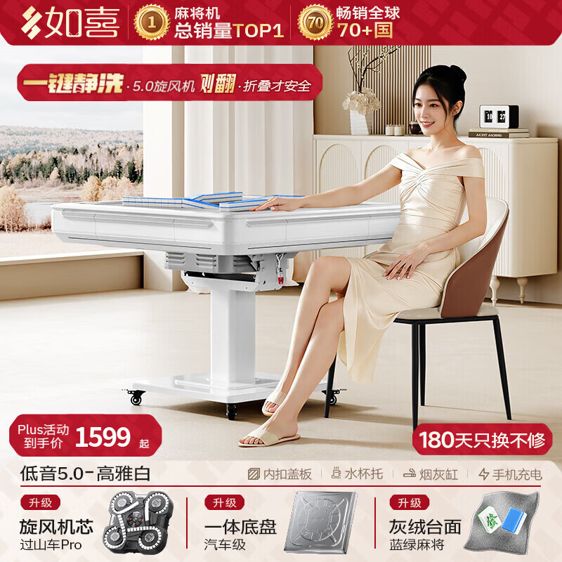 如喜【防侧翻20万次不卡牌】麻将机全自动餐桌低音家两用一体折叠电动 41【低音5.0超薄旋风机】防侧翻-灰台面-白 请联系客服选择麻将牌大小