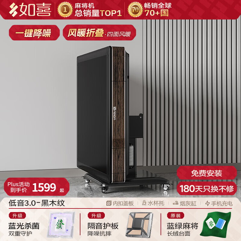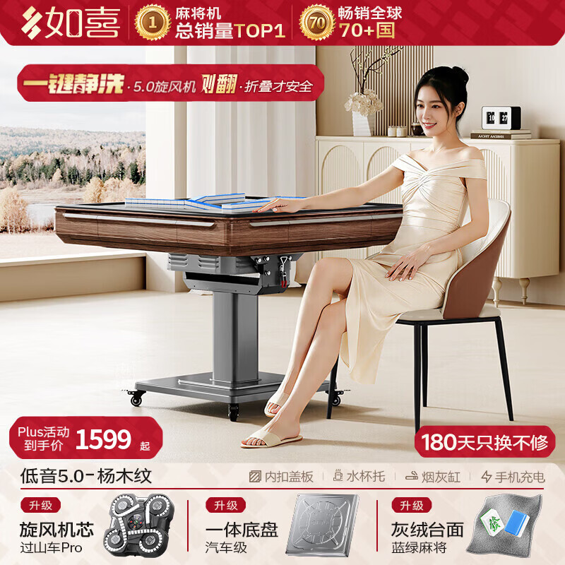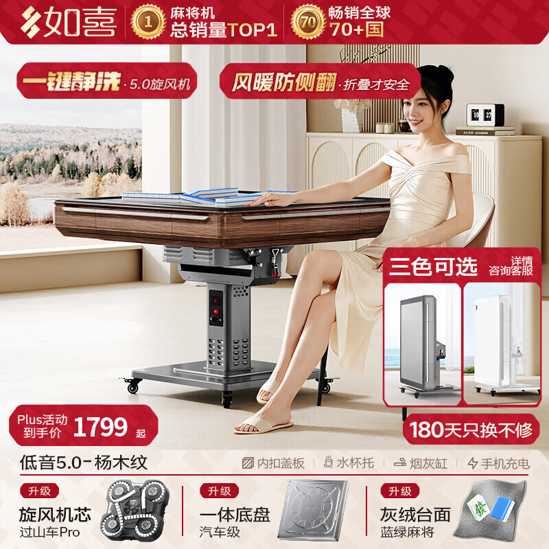 如喜【防侧翻20万次不卡牌】麻将机全自动餐桌低音家两用一体折叠电动 46【低音5.0超薄旋风】风暖防侧翻-灰绒-木纹(3色可选) 请联系客服选择麻将牌大小