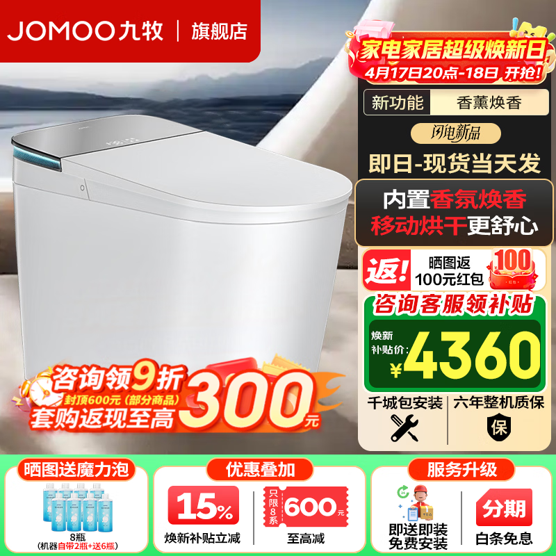 九牧(JOMOO)净界智能马桶S8家用马桶感应翻盖除臭虹吸坐便器无水压限制UV除菌 【净界Ultra-ZS860】香氛焕香+移动烘干 400坑距 (390以上选择)