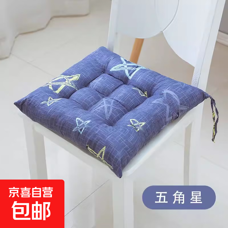 涤棉坐垫椅子办公室久坐座垫加厚学生女冬季椅垫家用凳子垫子屁垫 五角星蓝 40*40CM
