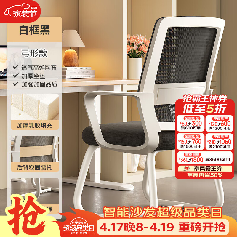 树浩电脑椅办公椅子舒适久坐靠背椅宿舍卧室学习座椅弓形电竞椅写字椅 【升级弓形款】乳胶款-白框黑网
