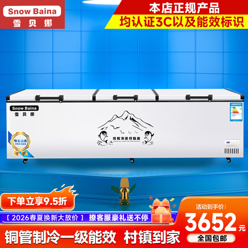 雪贝娜冰柜商用大容量全冷冻家用双温卧式冷柜展示柜 2288双机【双倍制冷一级能效】长3.1米