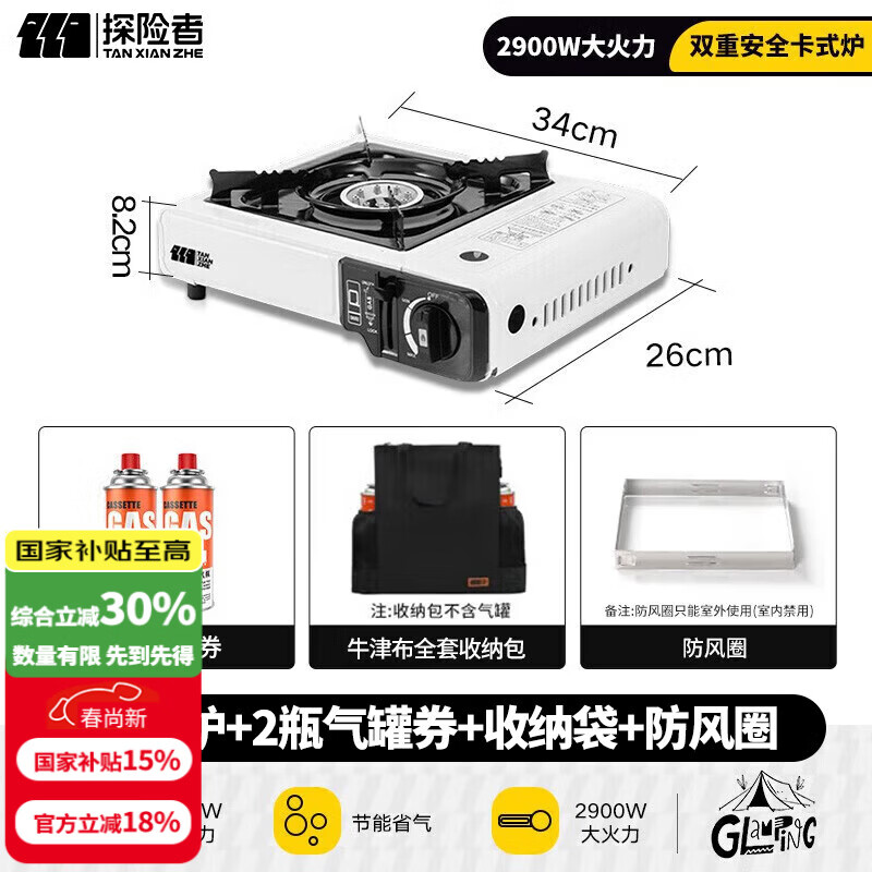 探险者(TAN XIAN ZHE)卡式炉户外野外炉具炊具卡斯炉一体便携式卡磁煤气瓦斯露营燃气灶 炉+防风圈+收纳包+2气券(赠品)