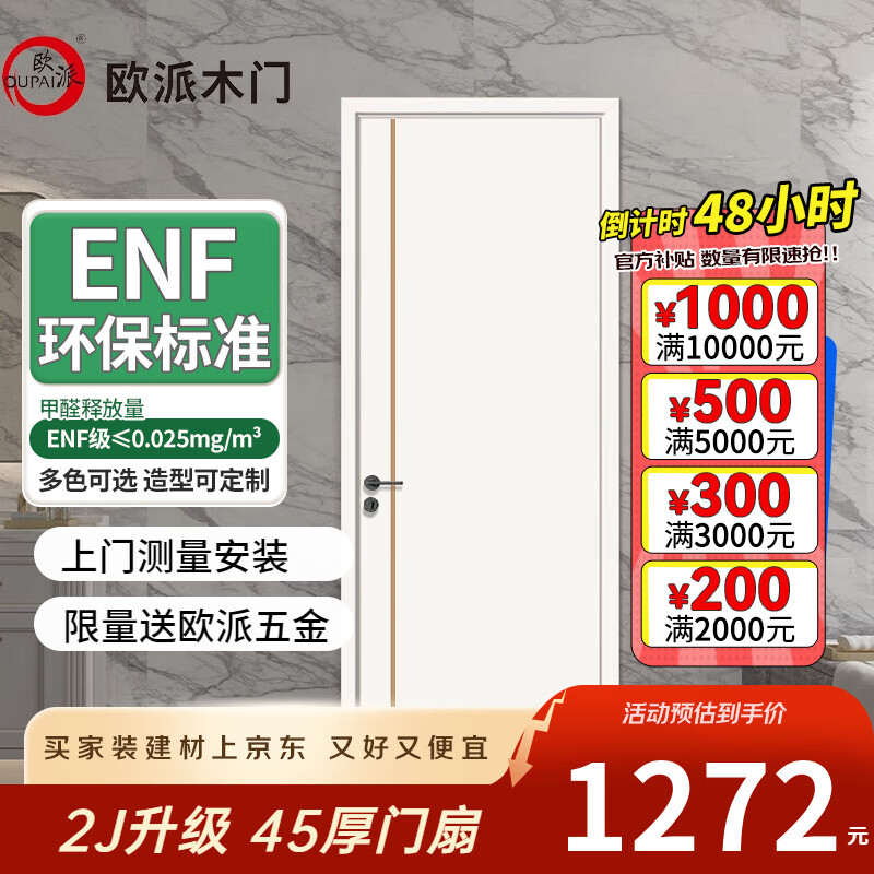 欧派(OUPAI)木门卧室门室内门厨房门 ENF级环保生态膜降噪免漆门 厨房推拉双开门极窄隐形门可定制 T-1002J-实木满填+PET肤感+碳晶面板