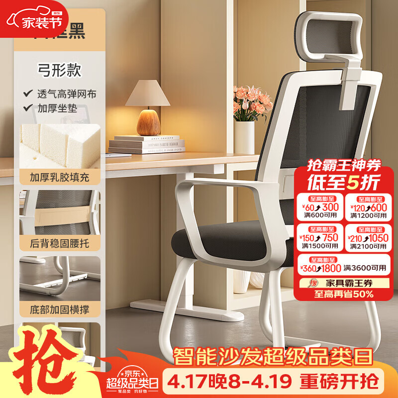 树浩电脑椅办公椅子舒适久坐靠背椅宿舍卧室学习座椅弓形电竞椅写字椅 【弓形头枕款】乳胶款-白框黑网