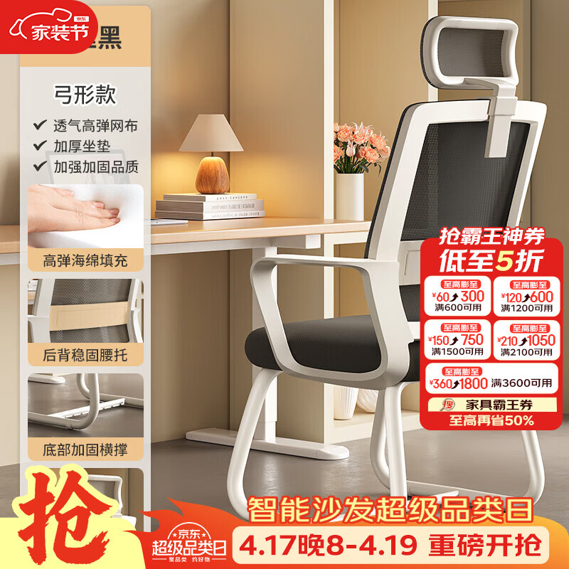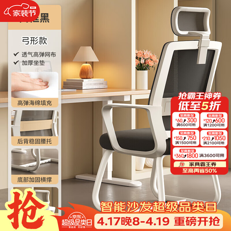树浩电脑椅办公椅子舒适久坐靠背椅宿舍卧室学习座椅弓形电竞椅写字椅 【弓形头枕款】海绵款-白框黑网
