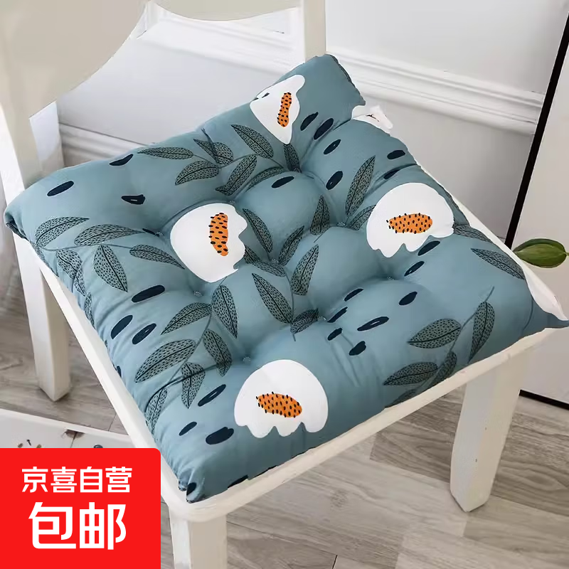 涤棉坐垫椅子办公室久坐座垫加厚学生女冬季椅垫家用凳子垫子屁垫 大花水蓝 40*40CM
