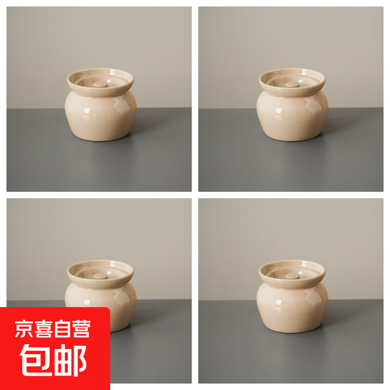 瓦罐炖盅煨汤罐陶瓷隔水蒸家用煲汤陶瓷罐带盖沙县小吃老式炖盅 米黄色四个装 450ml 直径11高度9