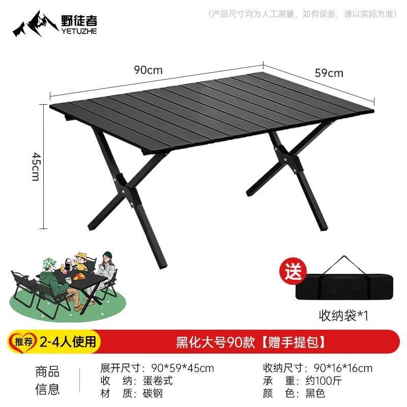 野徒者户外折叠椅露营椅子躺椅便携折叠月亮椅小凳子折叠凳钓鱼凳 90-60耀夜黑【1-4人蛋卷桌】 可躺/睡觉