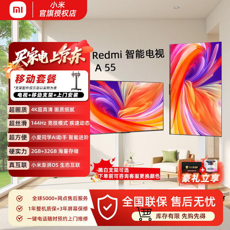 小米电视55英寸 Redmi A55节能版 2025款 120Hz高刷 远场语音电视 L55RB-RA 以旧换新 55英寸 【电视机+落地移动支架+安装】
