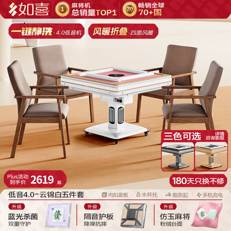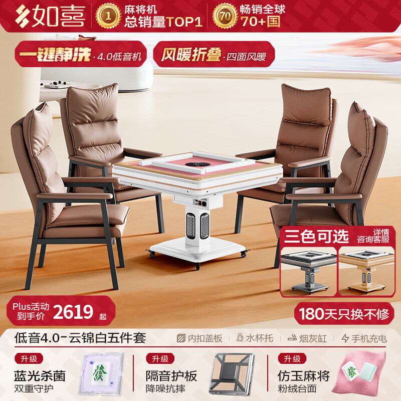 如喜【防侧翻20万次不卡牌】麻将机全自动餐桌低音家两用一体折叠电动 59【沙发椅】低音4.0一键静洗-仿玉风暖-粉绒(3色可选) 请联系客服选择麻将牌大小