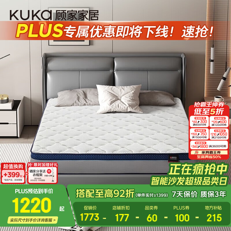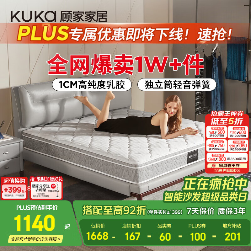 顾家家居(KUKA) 【梦想垫】乳胶床垫学生床垫环保0胶席梦思独袋弹簧双人床垫主卧 旗舰版-M0001C【22cm】 1500*1900
