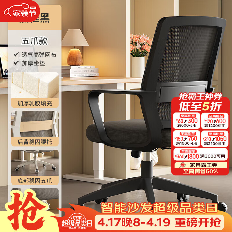 树浩电脑椅办公椅子舒适久坐靠背椅宿舍卧室学习座椅弓形电竞椅写字椅 【滑轮逍遥】乳胶+尼龙脚-黑框黑