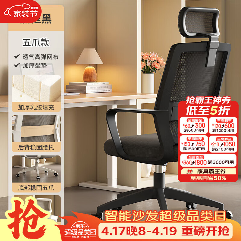 树浩电脑椅办公椅子舒适久坐靠背椅宿舍卧室学习座椅弓形电竞椅写字椅 【滑轮头枕】乳胶+尼龙脚-黑框黑