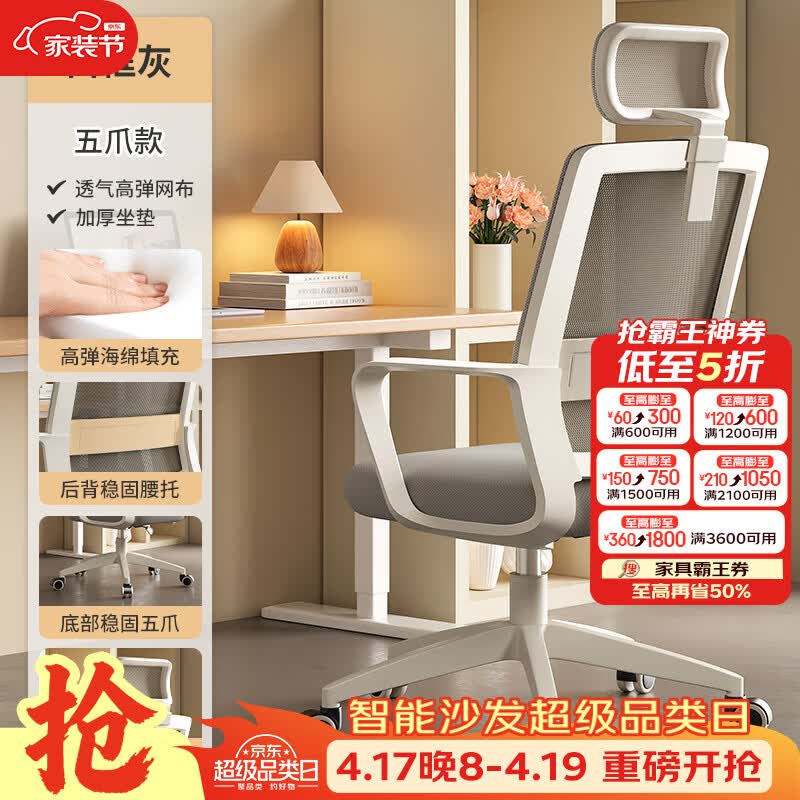 树浩电脑椅办公椅子舒适久坐靠背椅宿舍卧室学习座椅弓形电竞椅写字椅 【滑轮头枕】海绵+尼龙脚-白框灰