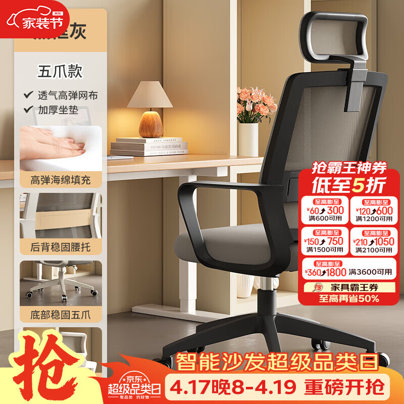 树浩电脑椅办公椅子舒适久坐靠背椅宿舍卧室学习座椅弓形电竞椅写字椅 【滑轮头枕】海绵+尼龙脚-黑框灰