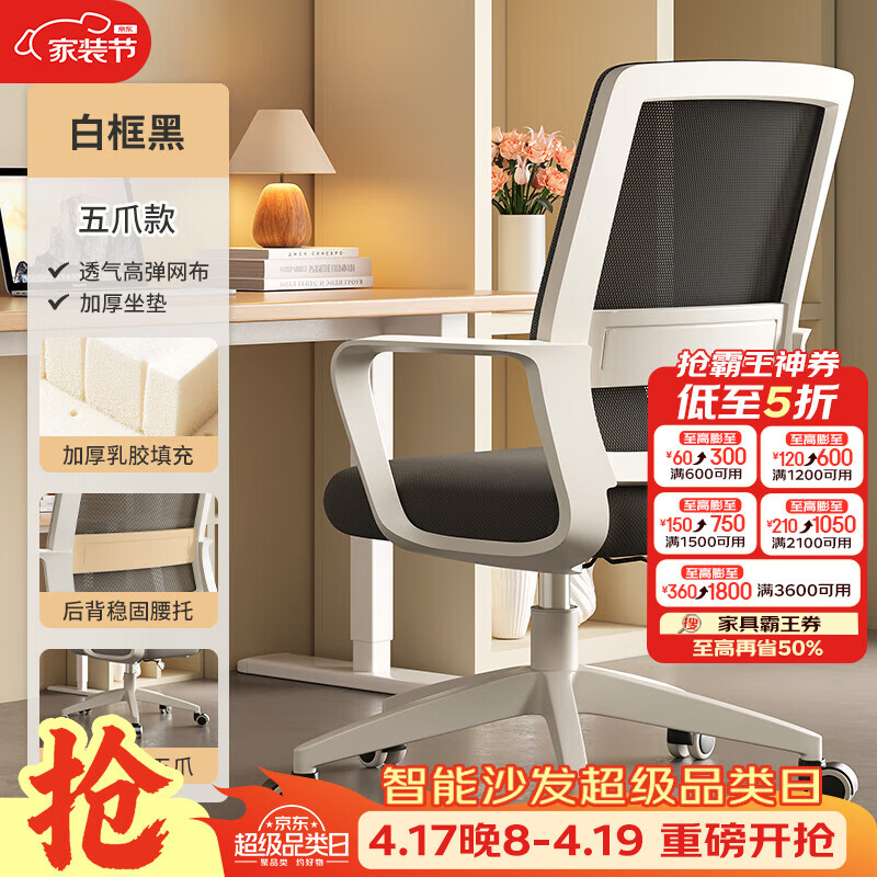 树浩电脑椅办公椅子舒适久坐靠背椅宿舍卧室学习座椅弓形电竞椅写字椅 【滑轮】乳胶+尼龙脚-白框黑网