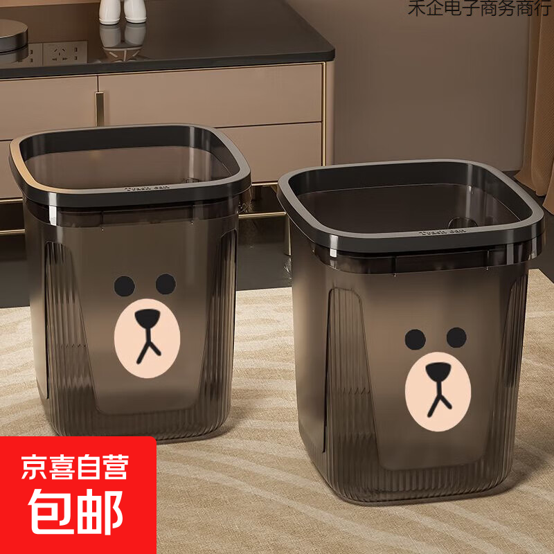 黑熊家用垃圾桶轻奢客厅厨房卧室卫生间厕所办公室压圈纸篓 超大号【26*25*31】两只装