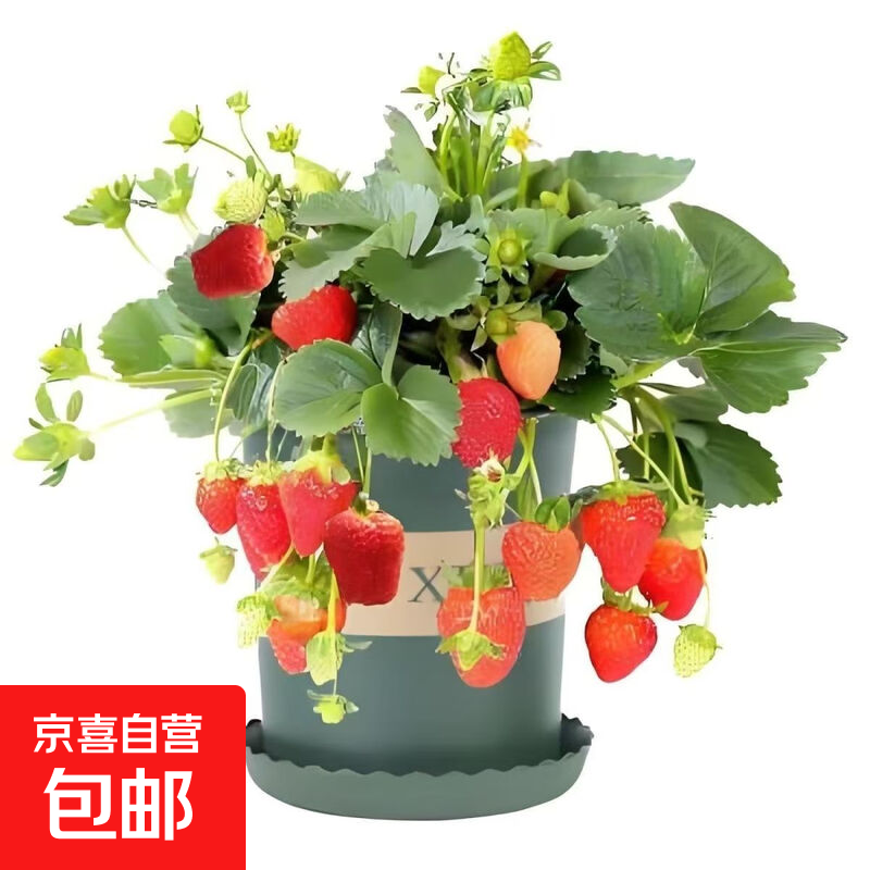 奶油红颜草莓苗加仑盆四季种植全国适用0.5加仑盆带盆带土栽好 妙香草莓苗+肥料 加仑盆【2盆】高10cm直径10cm