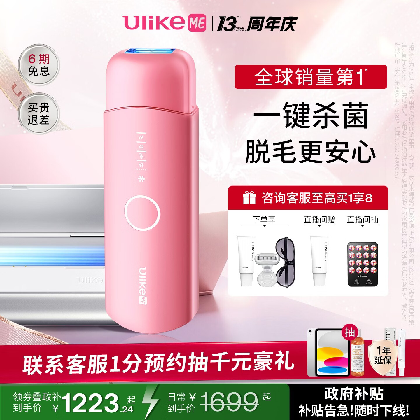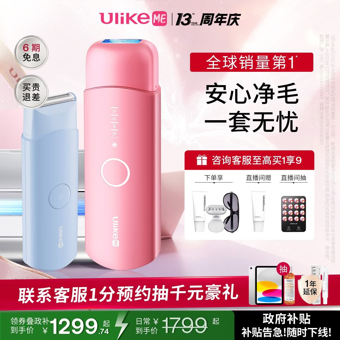 UlikeME【湿脱不加价】政府补贴蓝宝石冰点脱毛仪私处剃毛器女生大学生送男女友生日礼物美容仪 【洁净组合】ME粉+洁净舱京仓直发