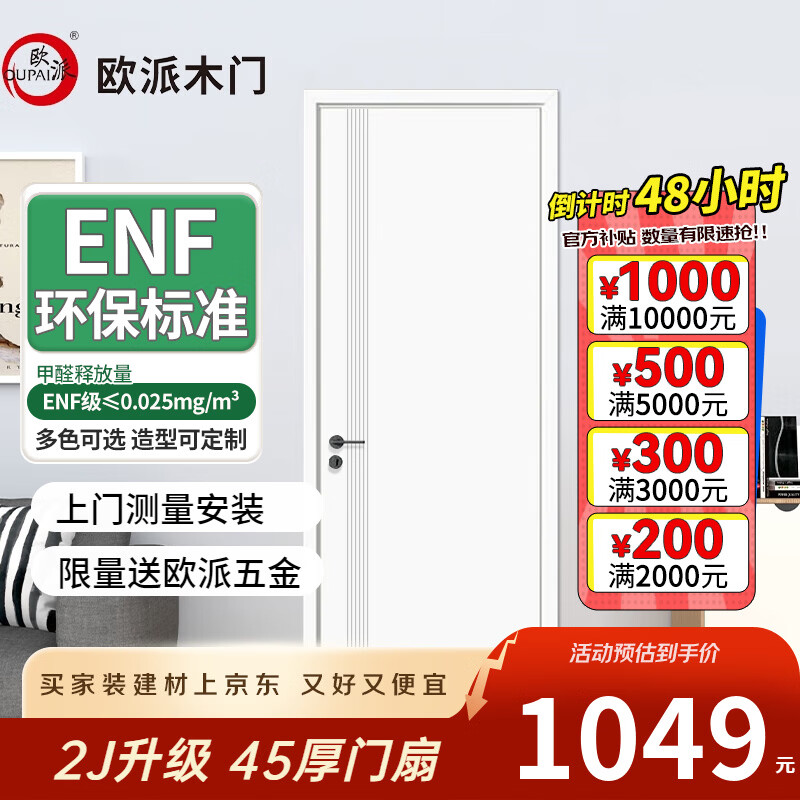 欧派(OUPAI)木门卧室门室内门厨房门 ENF级环保生态膜降噪免漆门 厨房推拉双开门极窄隐形门可定制 T-1201L-PET肤感+碳晶面板+石墨匀质板