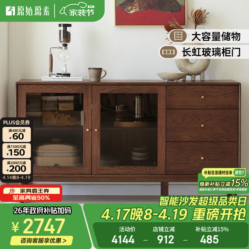 原始原素实木餐边柜橡木酒柜北欧简约餐厅储物柜碗柜茶水柜B3142 餐边柜-1800*400*810mm 黑胡桃色