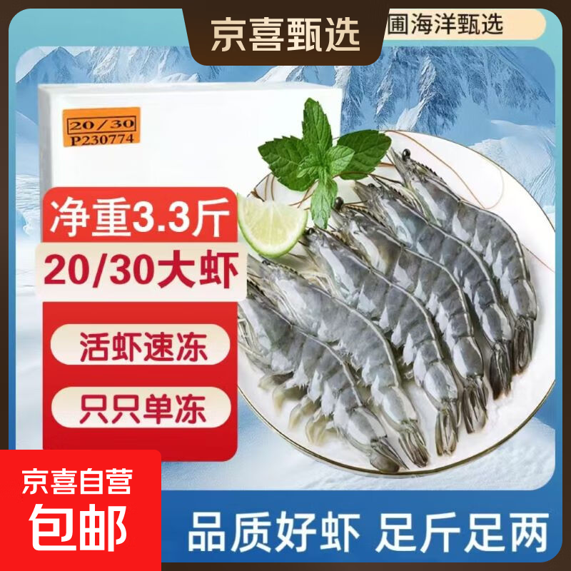 南美白对虾 厄瓜多尔盐冻大虾 微信域爆款生鲜虾类火锅食材 南美白对虾2030/盒 3.3斤(净重)