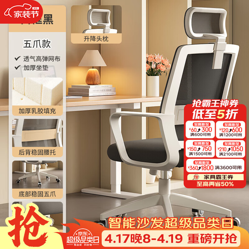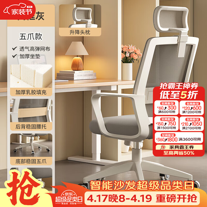 树浩电脑椅办公椅子舒适久坐靠背椅宿舍卧室学习座椅弓形电竞椅写字椅 【头枕逍遥】乳胶+尼龙脚-白框灰
