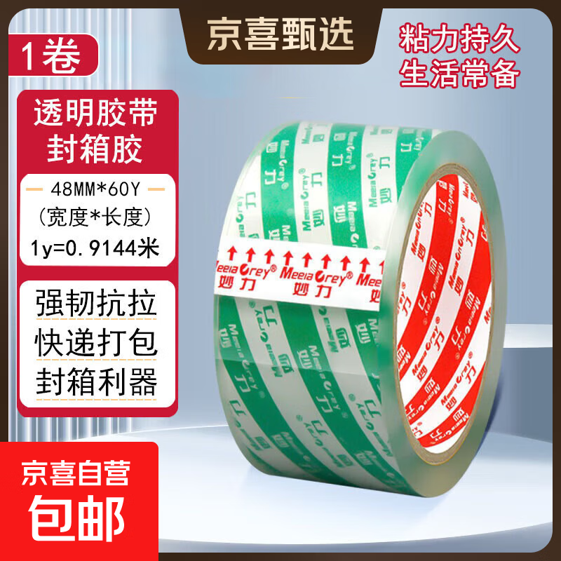透明胶带封箱胶带 高透性抗拉扯不易残胶 快递打包搬家适用 高透白宽48mm*60Y*50μm【1卷】
