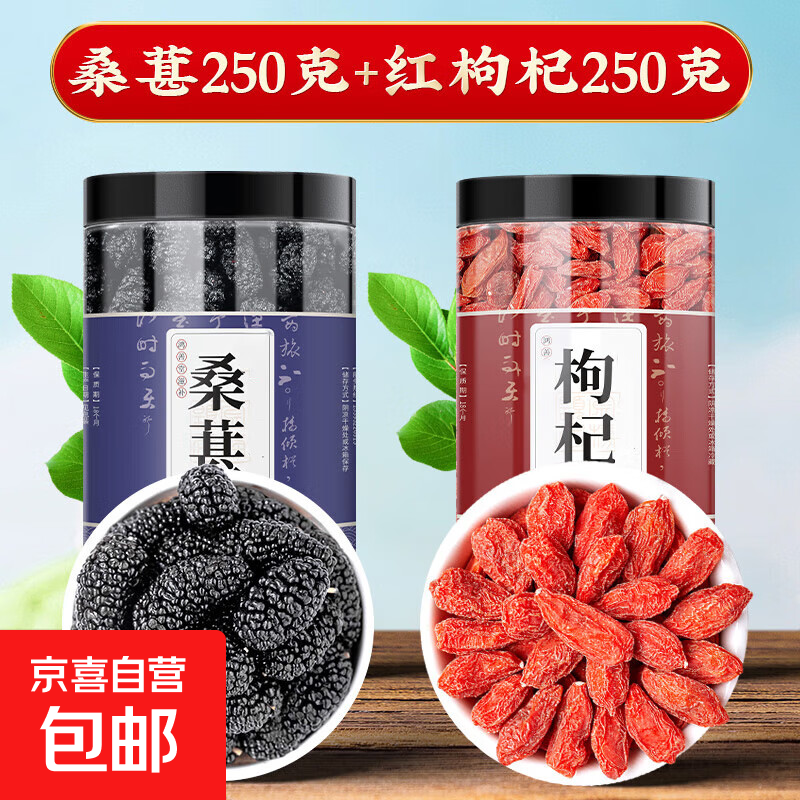 桑椹干无沙免洗泡茶桑葚干干吃泡水泡桑椹酒花青素罐装搭干枸杞 桑葚250克+红枸杞250克