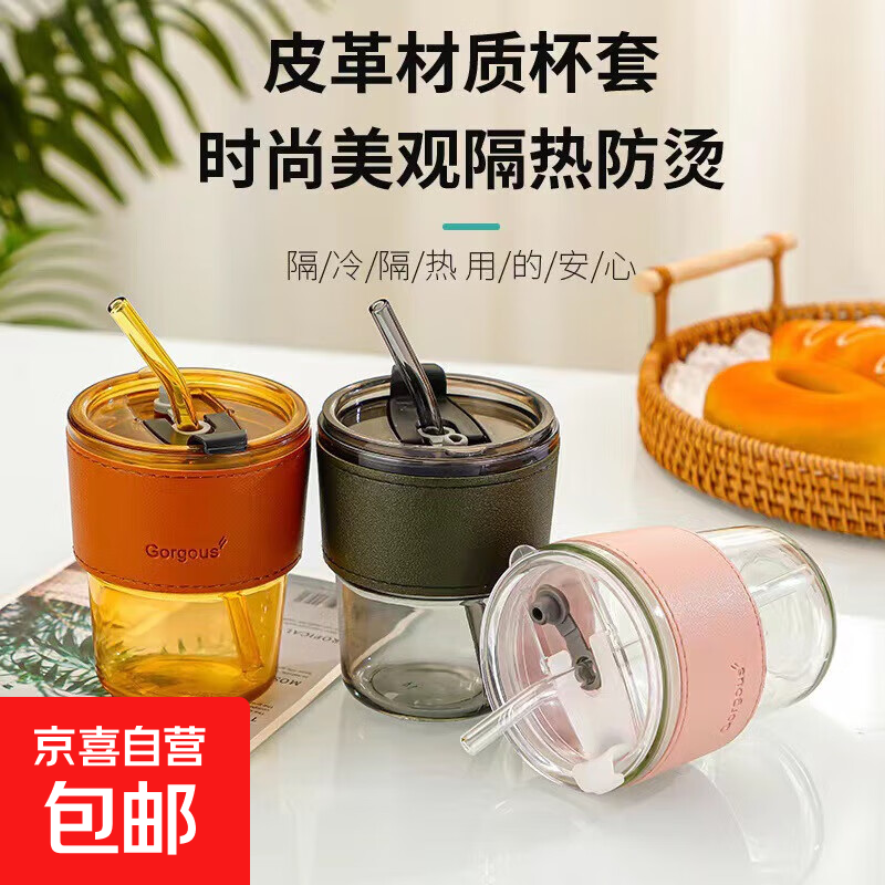高颜值新款网红竹节杯便携式带盖吸管玻璃水杯ins风户外洗漱杯 随机颜色2个装