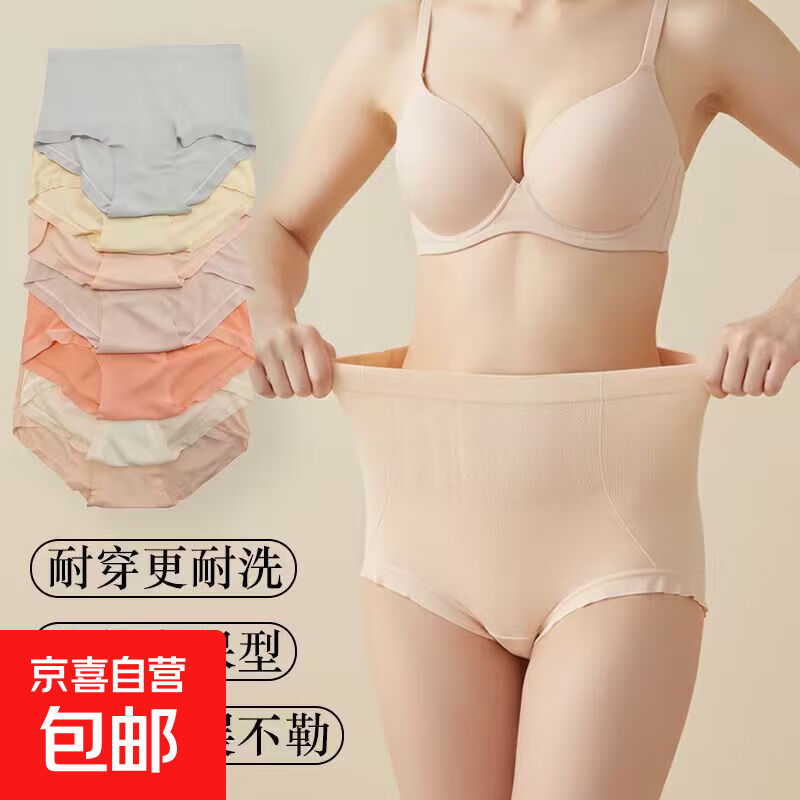 收腹内裤女无痕抗菌提臀产后塑身裤透气打底三角裤柔软亲肤#S001 【浅紫+奶白+黄金】 3件装 均码