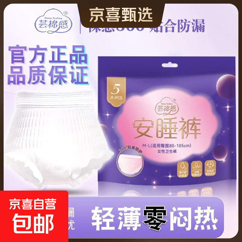 医护级芸棉感安睡裤女性卫生裤贴身防护瞬吸洁净透气舒爽亲肤柔绵 XL 5条 120-170斤