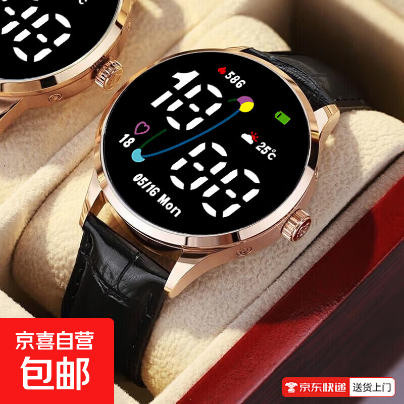【LED夜光显示】学生潮流时尚时间手表男女学生简约电子表ins风高颜值气质简约韩版手环Y23 本月新品+夜光显示+时间显示-升级款黑皮