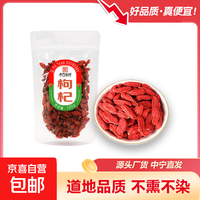 【地标产品】免洗宁夏特产无硫红枸杞特产无添加泡茶滋补南北干货 精选枸杞 特优大果 100g