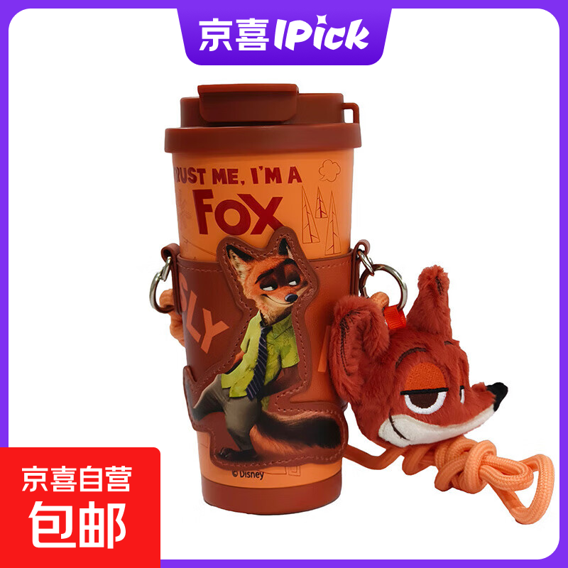 正版迪士尼疯狂动物城联名316不锈钢咖啡杯男女保温杯礼物水杯 尼克【毛绒挂件+挂绳】 500ml 无规格