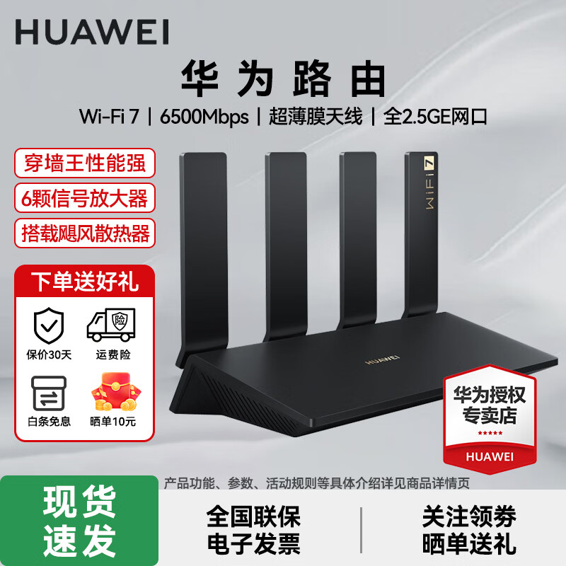 华为(HUAWEI)路由器全千兆WiFi6+家用无线5G双频穿墙王信号放大器增强器游戏家长全屋电竞漏油器mesh 穿墙王至尊WiFi7|无线6500M|2.5G口全