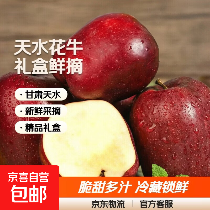 正宗甘肃天水新鲜采摘花牛苹果平安果 精品礼盒净果4.2斤装
