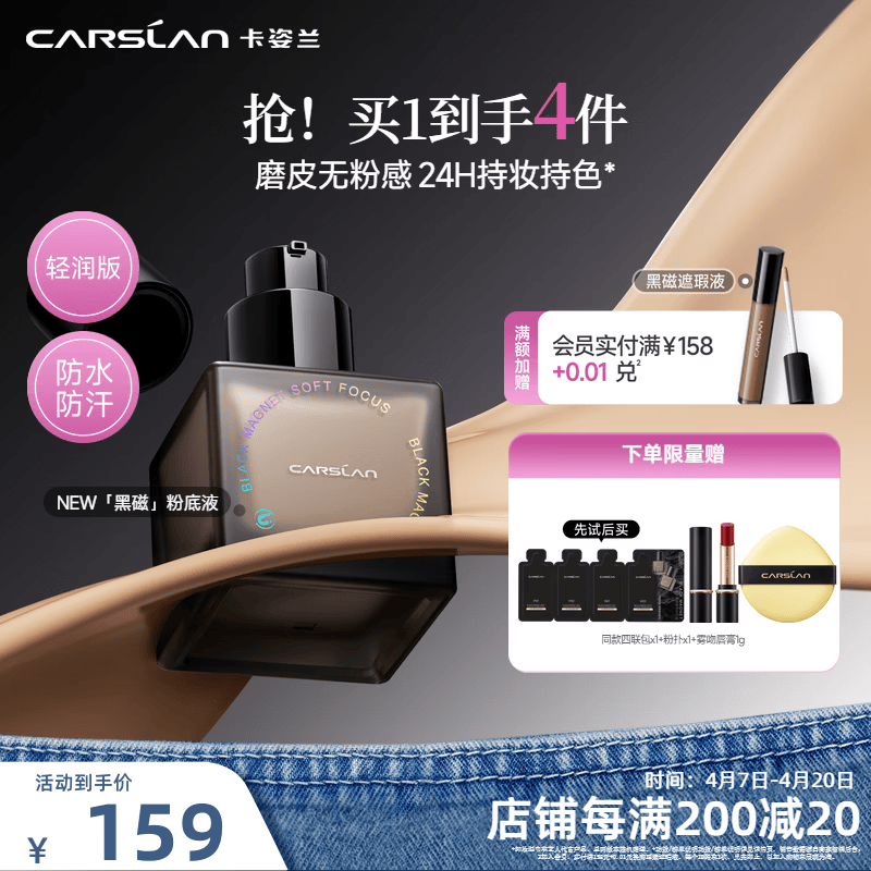 卡姿兰(Carslan)黑磁粉底液遮瑕自然防水汗持妆控油BB霜抗暗沉化妆品生日礼物女友 黑磁柔焦粉底液(轻润版)N01