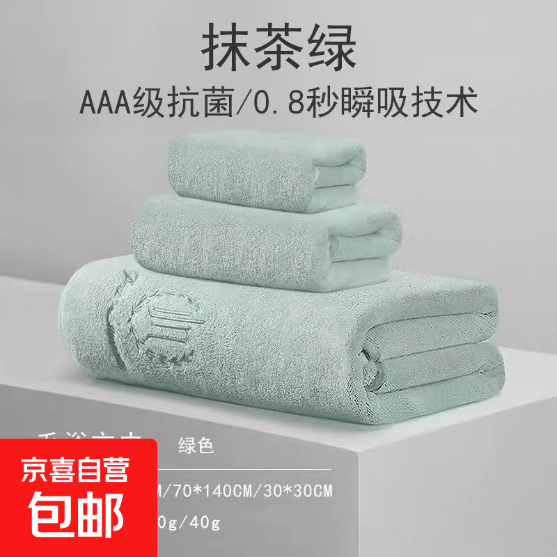 毛巾浴巾三件套男女2025新款比纯棉吸水速干家用大人高级裹巾加厚 绿色三件套(浴巾+两条毛巾)