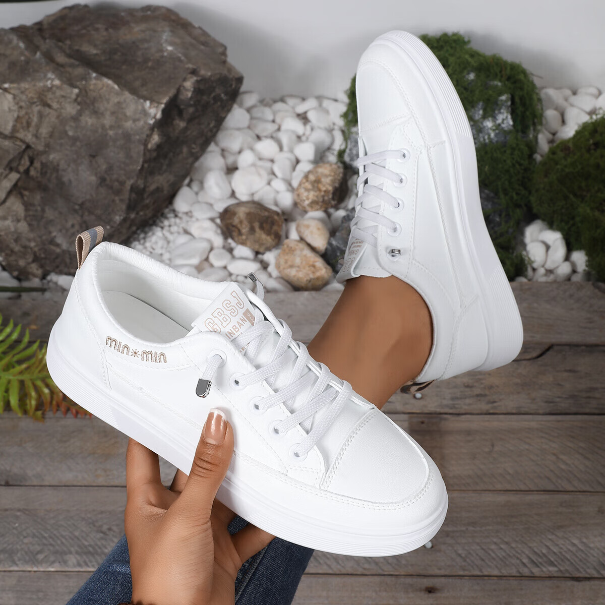 秋冬 女士 皮面 百搭透气 小白鞋 平底运动休闲韩版板鞋女 新款 刺绣白卡色 36