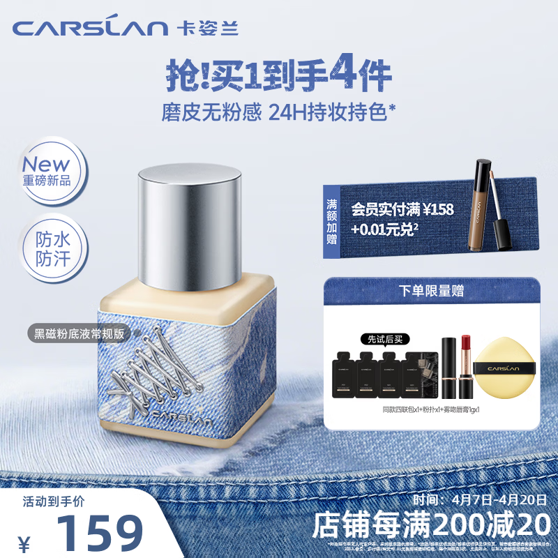 卡姿兰(Carslan)黑磁粉底液遮瑕自然防水汗持妆控油BB霜抗暗沉化妆品生日礼物女友 【春夏限定】黑磁粉底液P02(常规版)