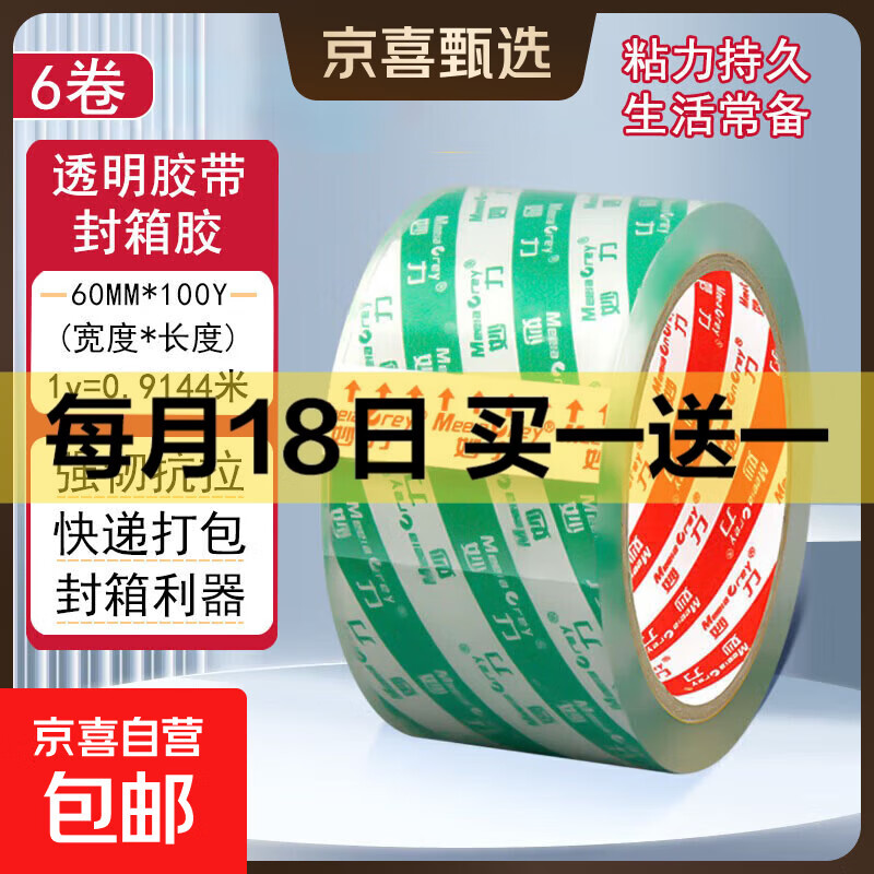 透明胶带封箱胶带 高透性抗拉扯不易残胶 快递打包搬家适用 高透白宽60mm*100Y*50μm【6卷】