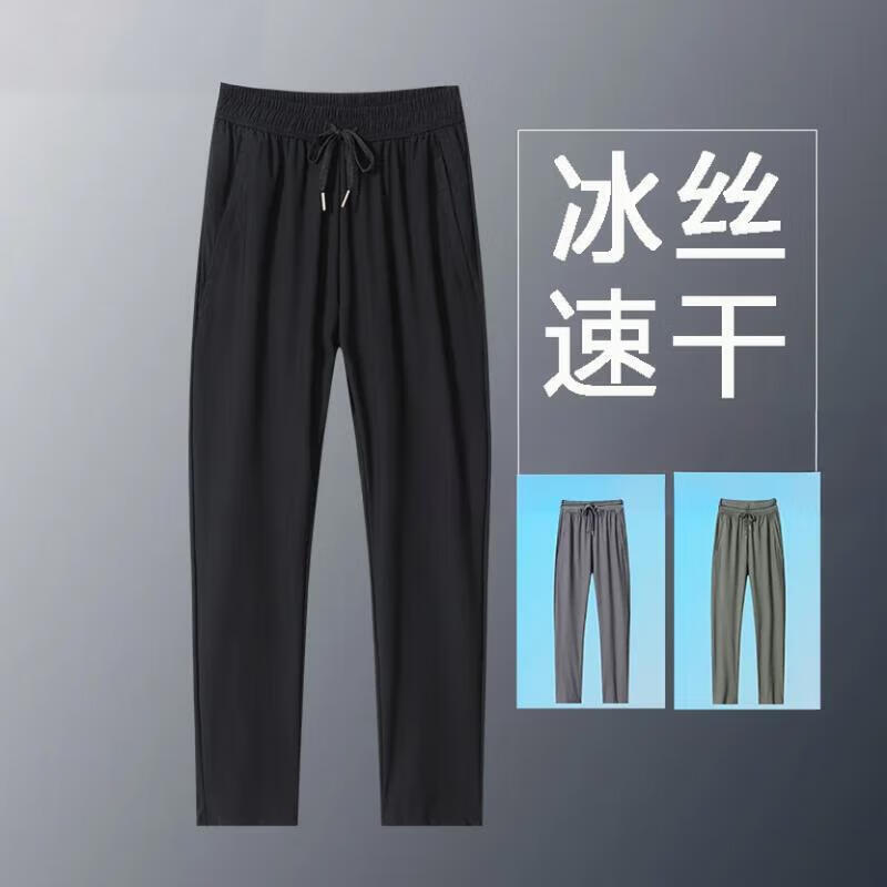 直筒宽松高弹速干空调裤运动长裤冰丝裤 黑色 XL