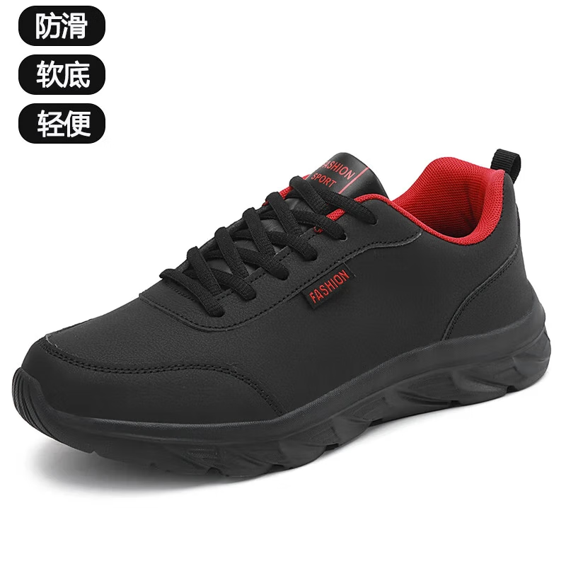 男鞋春秋季皮面防水男士运动鞋软底轻便2025新款休闲鞋大码跑 891黑红色 40 【标准运动鞋码】