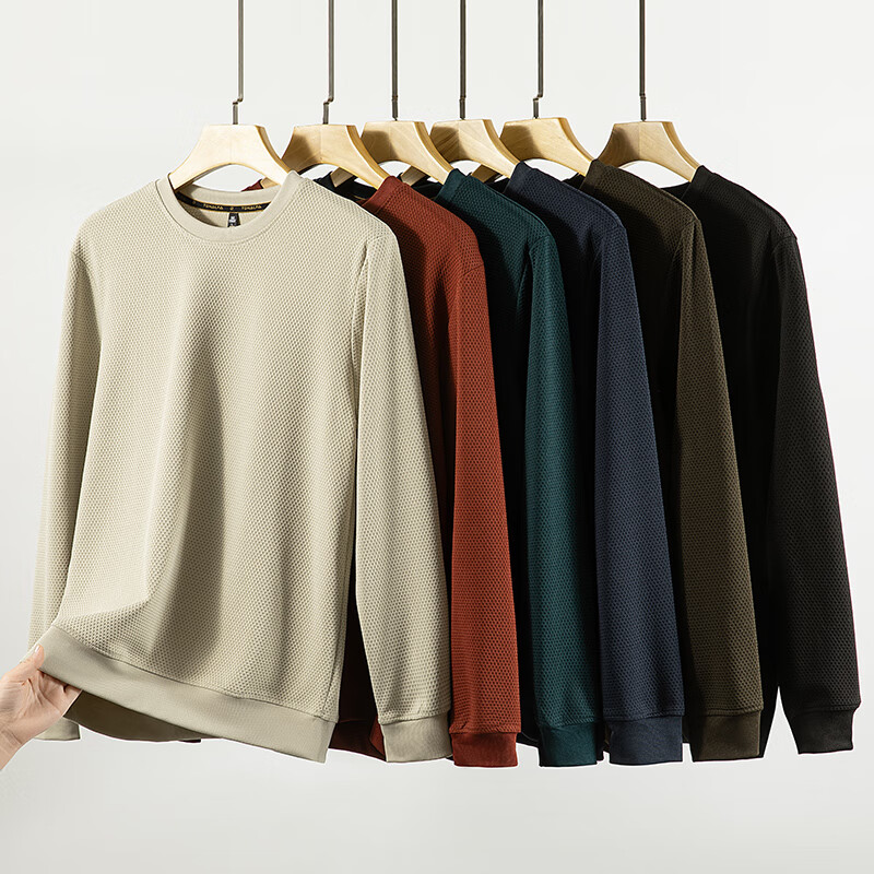 2025冬季 圆领打底衫 宽松休闲长袖T恤 男士秋衣装 卡其色 2XL