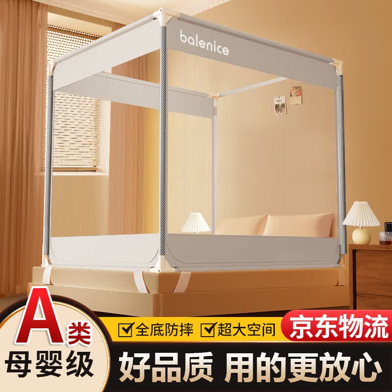 德双曼防摔蚊帐1.8x2米家用免安装婴儿防摔卧室1.5米x2米床三开门蚊帐 适用1.5*2.0m床【全底】灰色A类帐纱