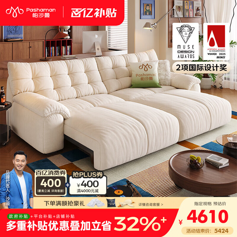 帕沙曼泡泡熊布艺沙发小户型客厅雪尼尔复古奶油风可拆洗2026新款2929ZF 【可拆洗款】3.1米多人位【雪尼尔】 【舒享版】 空气棉+乳胶+竹炭海绵