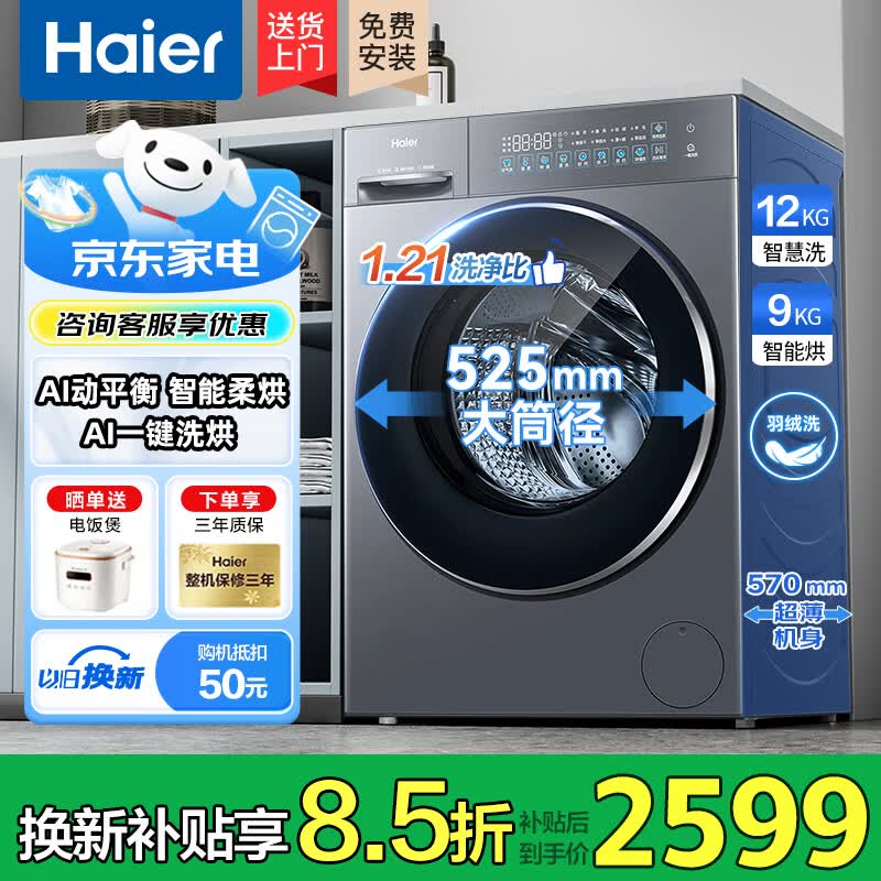 海尔(Haier)滚筒洗衣机10公斤全自动洗烘一体带烘干一级能效除螨菌超薄机身以旧换新补贴 海尔58A1|微蒸空气洗 滚筒洗烘 12kg 咨询客服更优惠