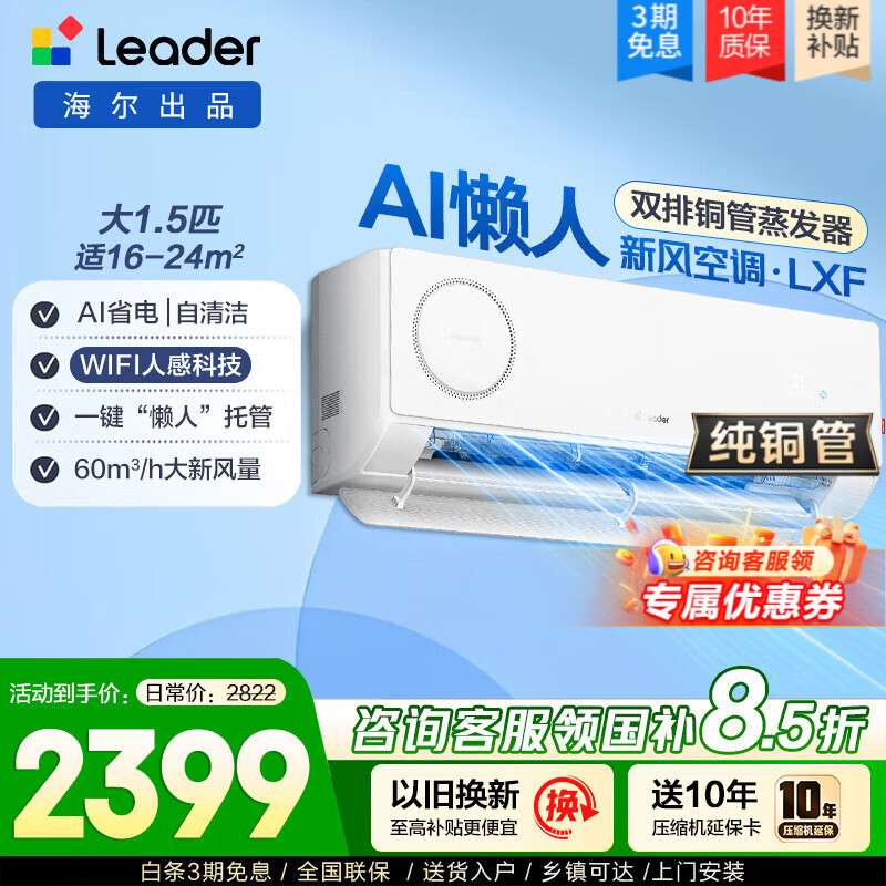 海尔空调出品统帅新1级纯铜管超省电大1.5匹AI智能挂机空调 大风量防直吹卧室冷暖两用空调 以旧换新 【AI懒人托管】懒人四免托管|AI健康新风